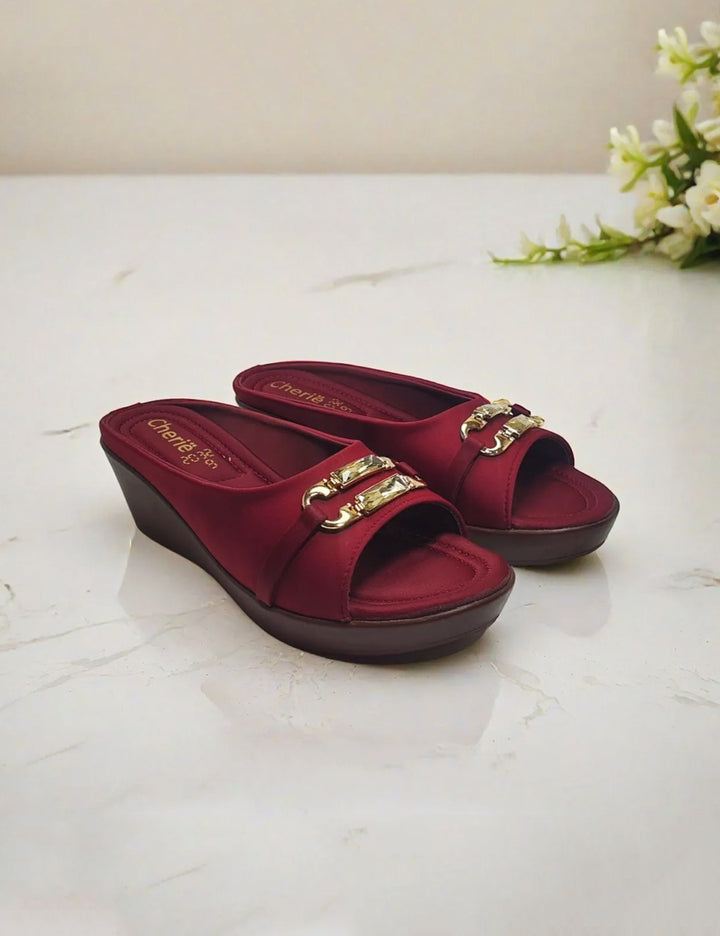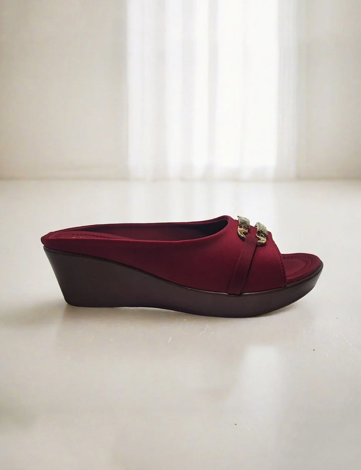 Maroon Wedge Sole Slippers