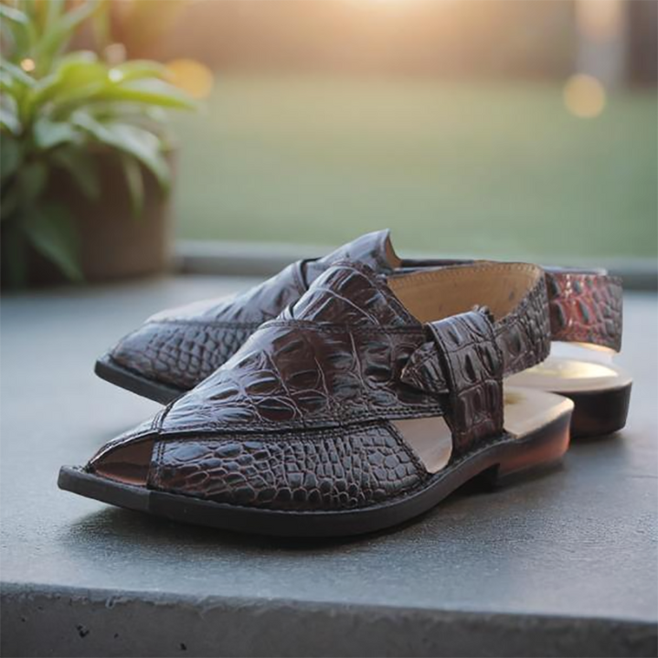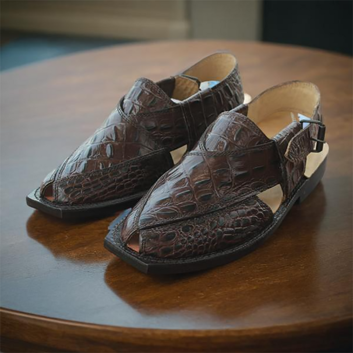 - Elevate your style with our Brown Leather Peshawari shoes. Crafted with luxurious brown leather, these Peshawaris offer comfort and durability. Perfect for any occasion, whether it's a formal event or a casual outing, these shoes will elevate your wardrobe and make a statement. Experience sophistication and exclusivity with every step.