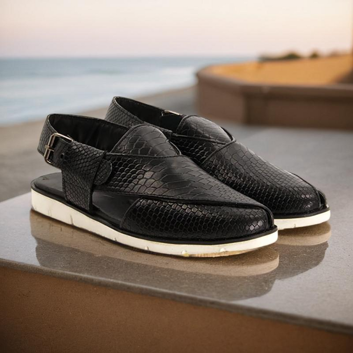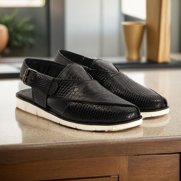 - Black Peshawari For Men. Note: These -Peshawari are made to give your feet a perfect fuller look and to accompany a statement style to your dress and will make your feet comfortable and a signature for your casual and formal look. Amazingly soft sole to keep you comfortable. Designed to go with both casual and formal looks. Attractive color to compliment any outfit. Hand-crafted with love and care for our customers. Breathable design to keep your feet fresh.